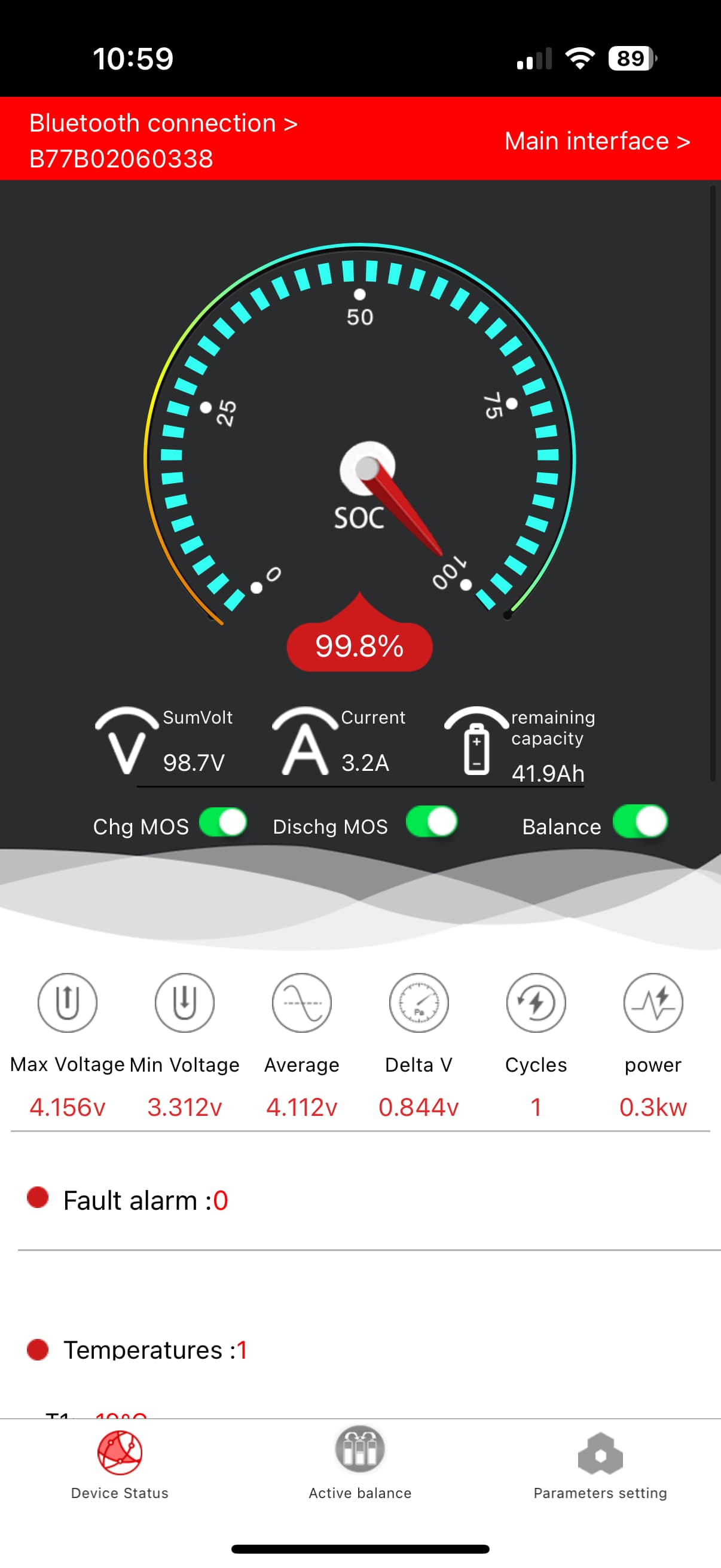 The battery is from Febuary 2023 but has never been flown and only has 1 charge cycle on it according to the BMS. I have attached two screenshots showing all the charges on the strings and the Delta v