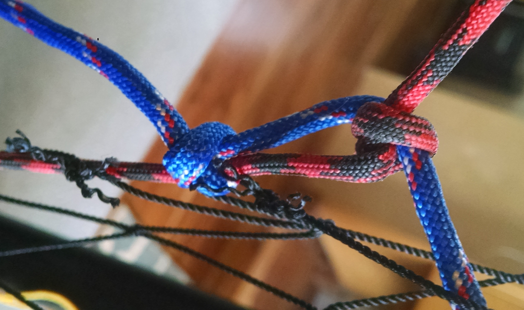 I think you should just re-route the parachord to match mine. Notice how the chord overlaps the bottom arms: