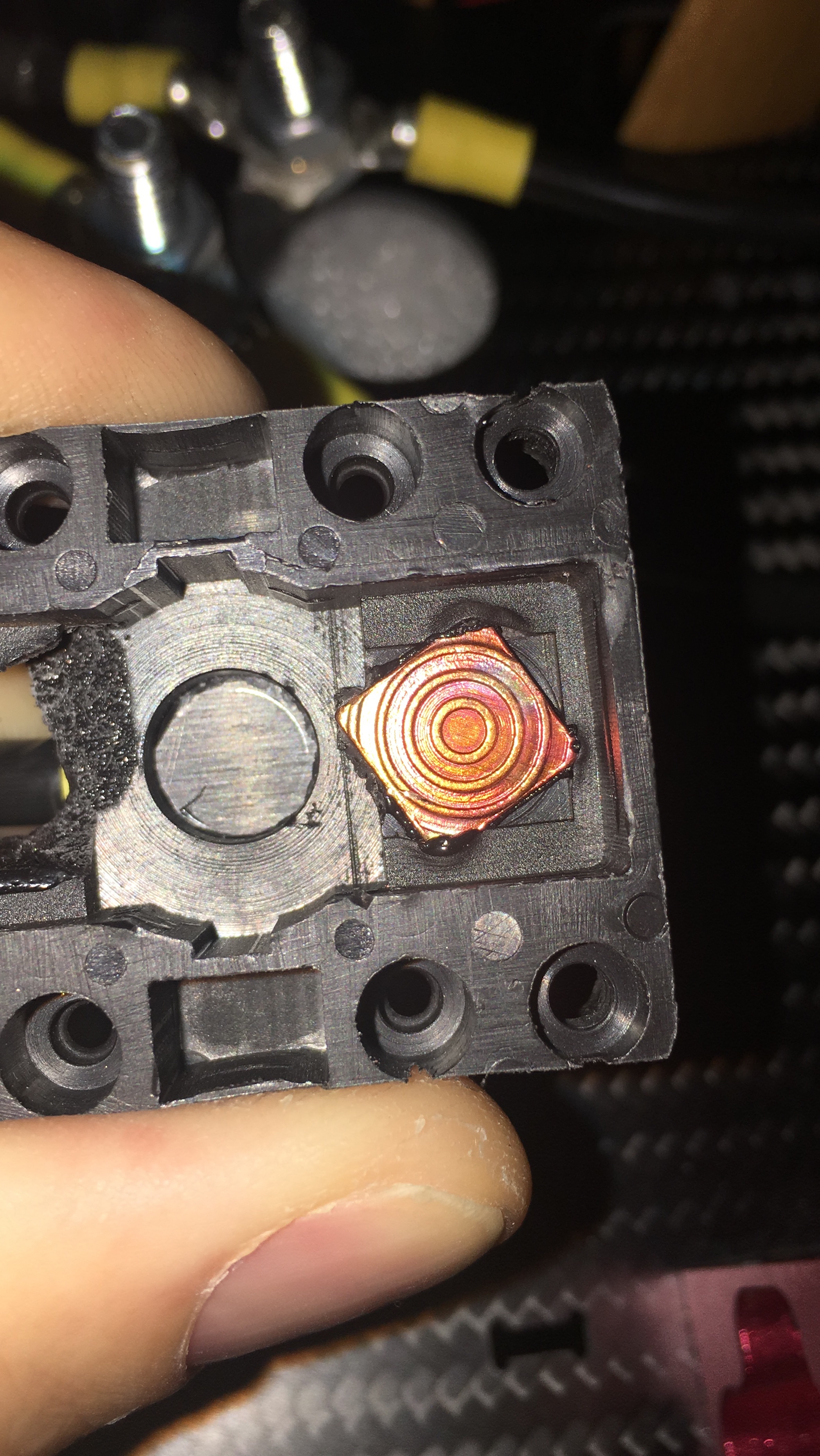 I don’t see any pitting on the contacts caused by arcing, at least not on one side (the other side is covered in melted plastic). This leads me to believe that my connection worked loose after all those flights. A loose connection would cause the one stud to get hot and melt the plastic. So now I’m debating if I want to bother with a precharge or even parallel switches.