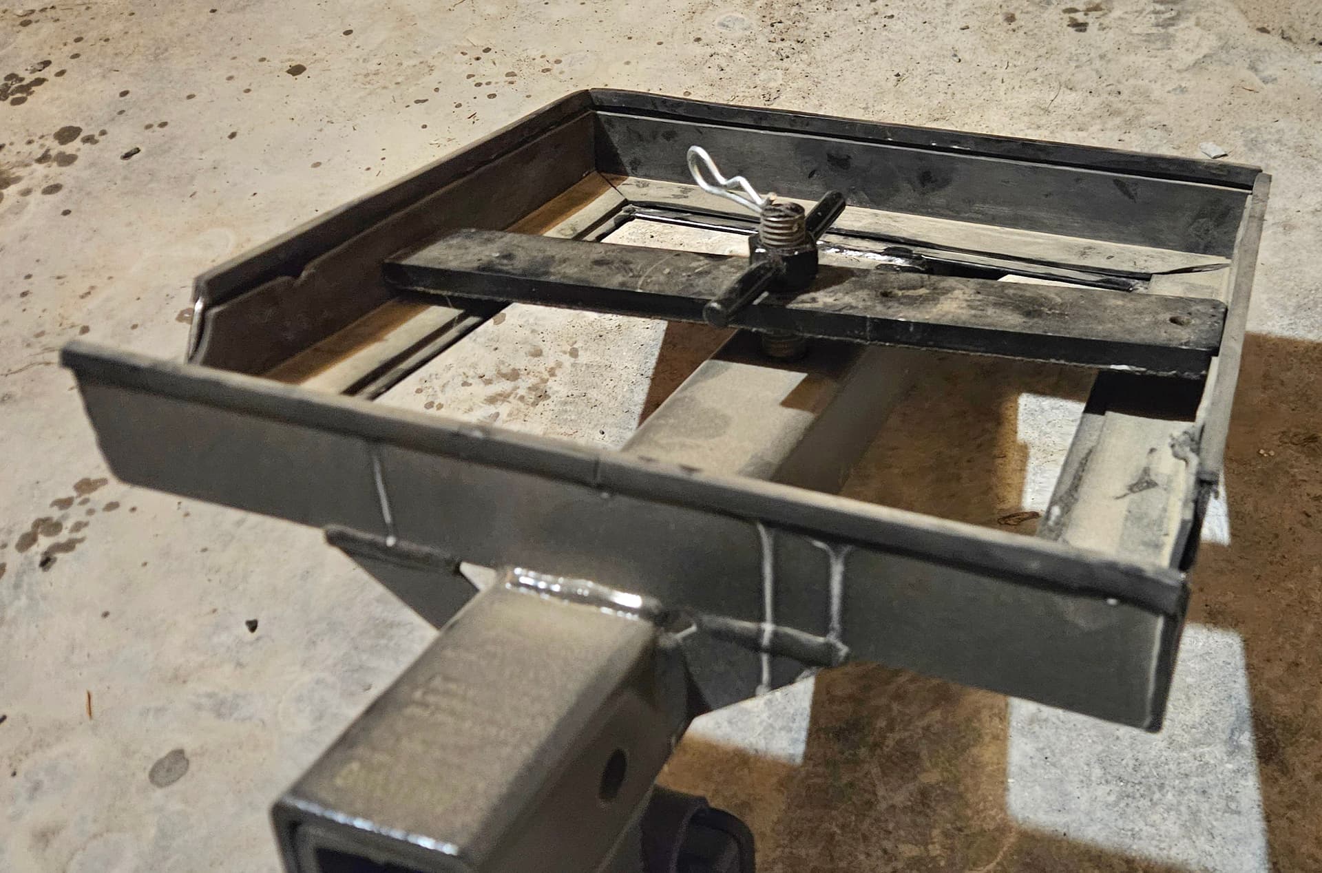 If you brake it down, the 2” beams are two regular hitch parts that are weld together. After you just need the to fix the sitting bed on the top of that..et voilà!