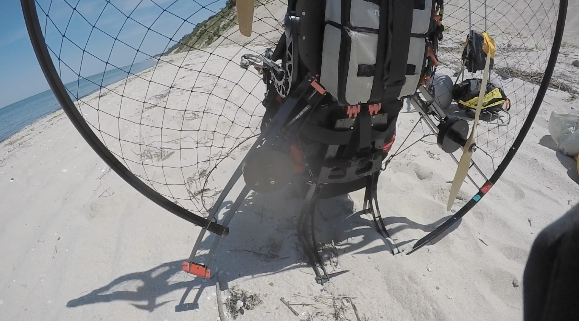 It was a weird one,… I had forgotten to bring the hoops stiffeners I had made with me that day ( they work great and I think your brackets would make things even better). So, I took off with an angled cage because overtime, the connections at the ends of the tubes had loosened quite a bit. I inflated the wing, an accelerated. I remember hearing a weird noise and almost aborted the takeoff but went for it anyway. The noise did not last more than a few seconds while I was running. 40mn later with a bit of help from the ridge lift, I landed, and when placed the PPG on the beach, I walked behind it and my lower jaw just dropped… I realized I had flown 40 minutes with only 3 propellers ![]()